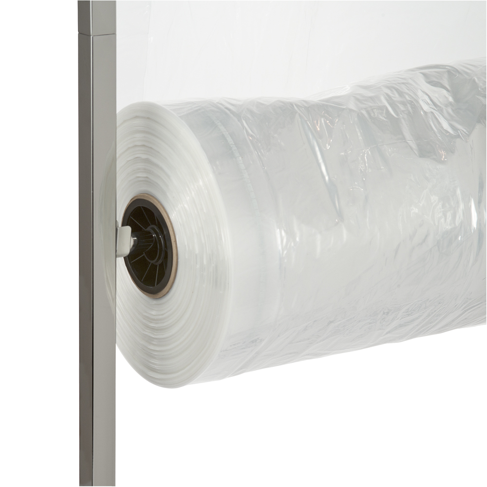 Base is made of 1″ square tubing. Holds three rolls of polyethylene. Bagging jack adjusts from 39″ to 68″. For use in back rooms, at check outs, and dry cleaners.