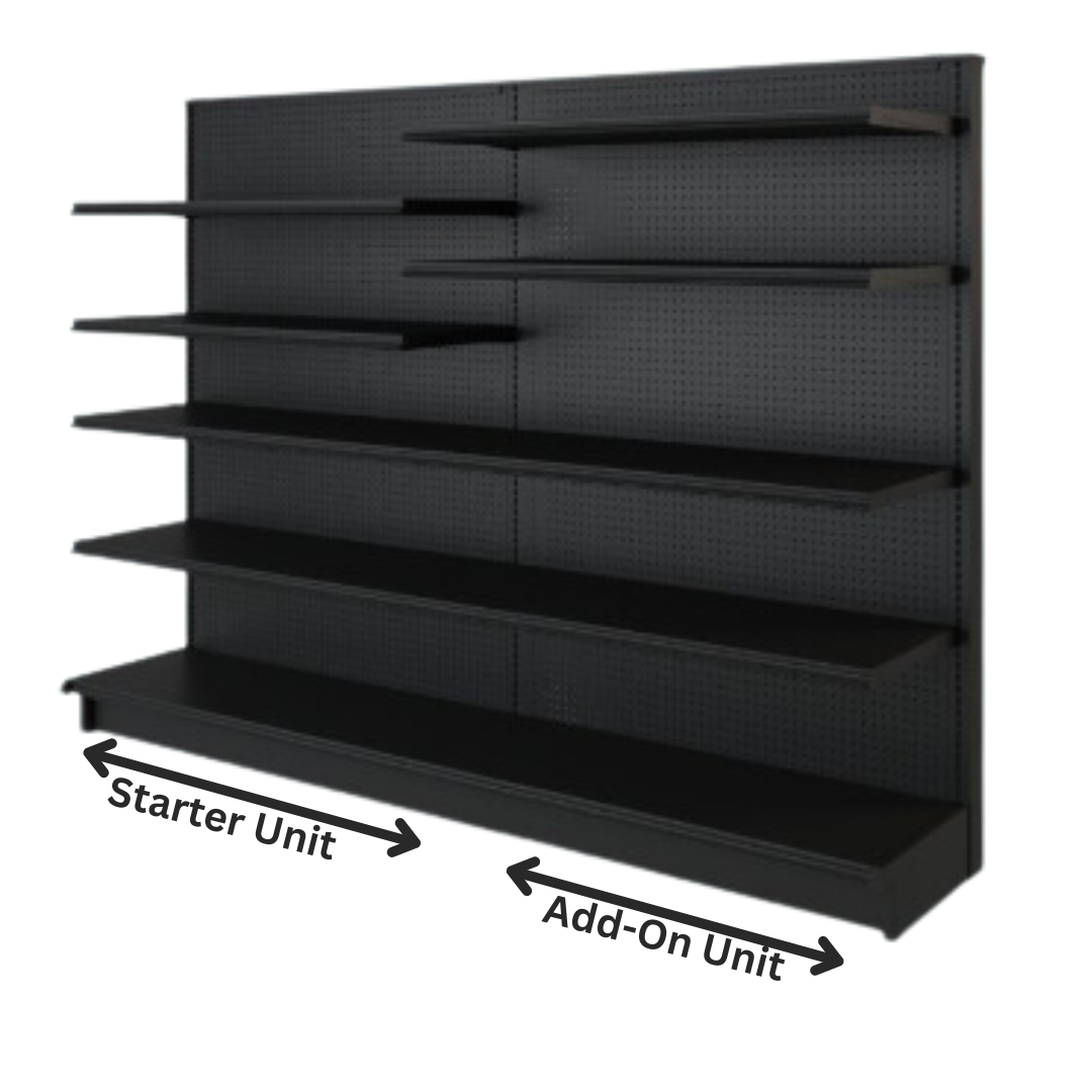 Add-ON Unit – SIMILAR to Starter Unit: Includes 1 Uprights, 1 Shoe, 1 Shoe Cover. Standard backing is a SOLID panel.