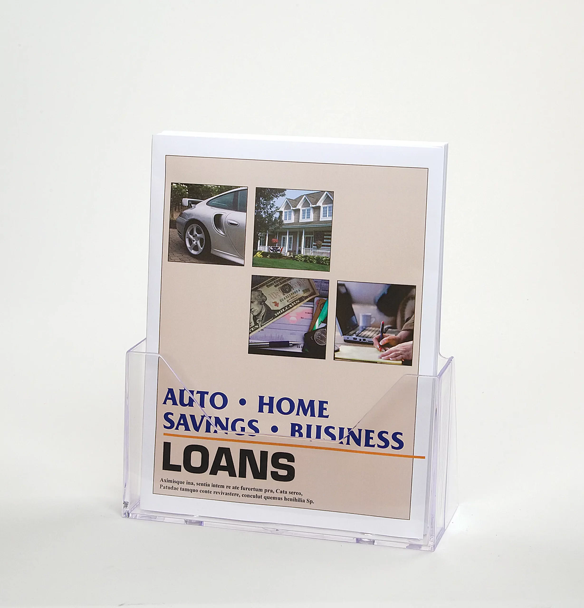 Cost effective styrene literature holder holds 8-1/2″ x 11″ printed material including brochures, sell sheets, flyers or other promotional materials.