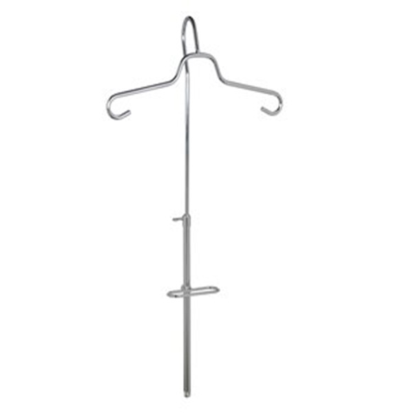 18″-36″ Adjustable gooseneck stand used to display a blouse or shirt. Creates an attractive display. Hanger is 16″. Can be used with any deluxe chrome base with 5/8″ fitting.