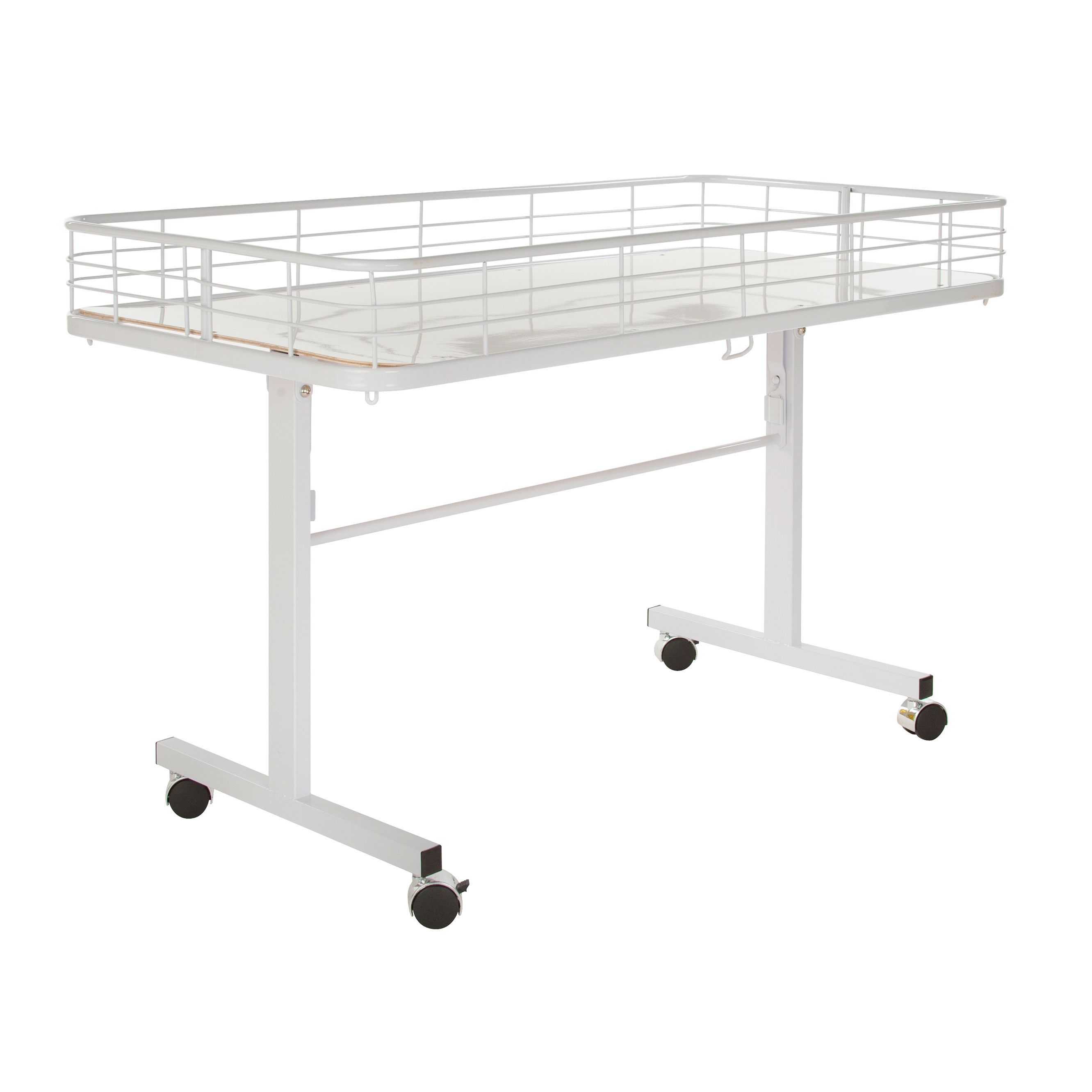 Primarily used for sale items, overstock items, packaged items or promotional programs. Features casters for easy mobility and folds for easy storage. Basket measures 4 5/8″ deep. Includes two locking and two non-locking twin-wheel casters.