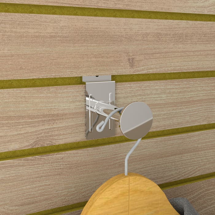 Used to hold up to three (3) garments on hangers. Disc end prevents hangers from sliding.