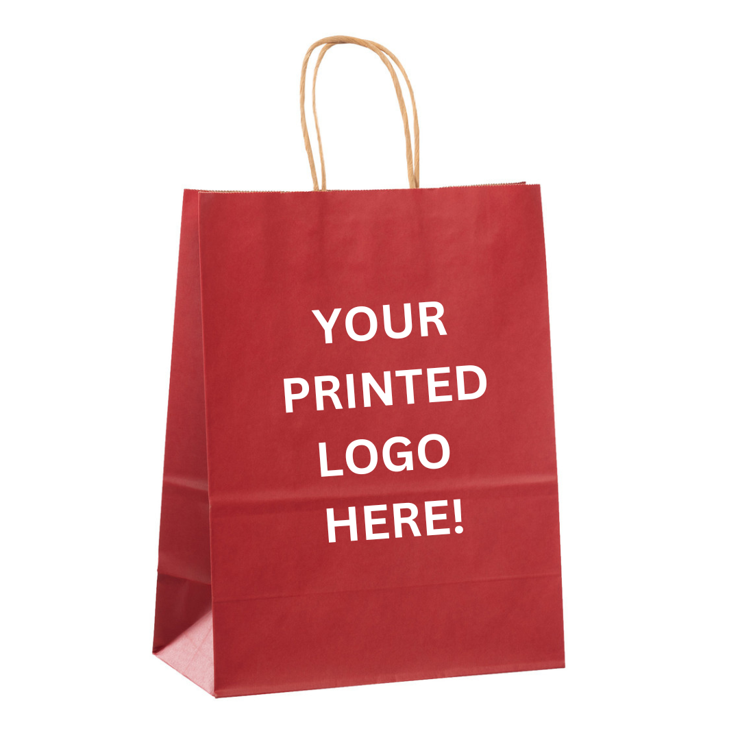 Our Red Paper bags are 100% recyclable, reusable and made of 120gsm premium quality with twisted twine handles for extra durability and are 40% post-consumer recycled content.