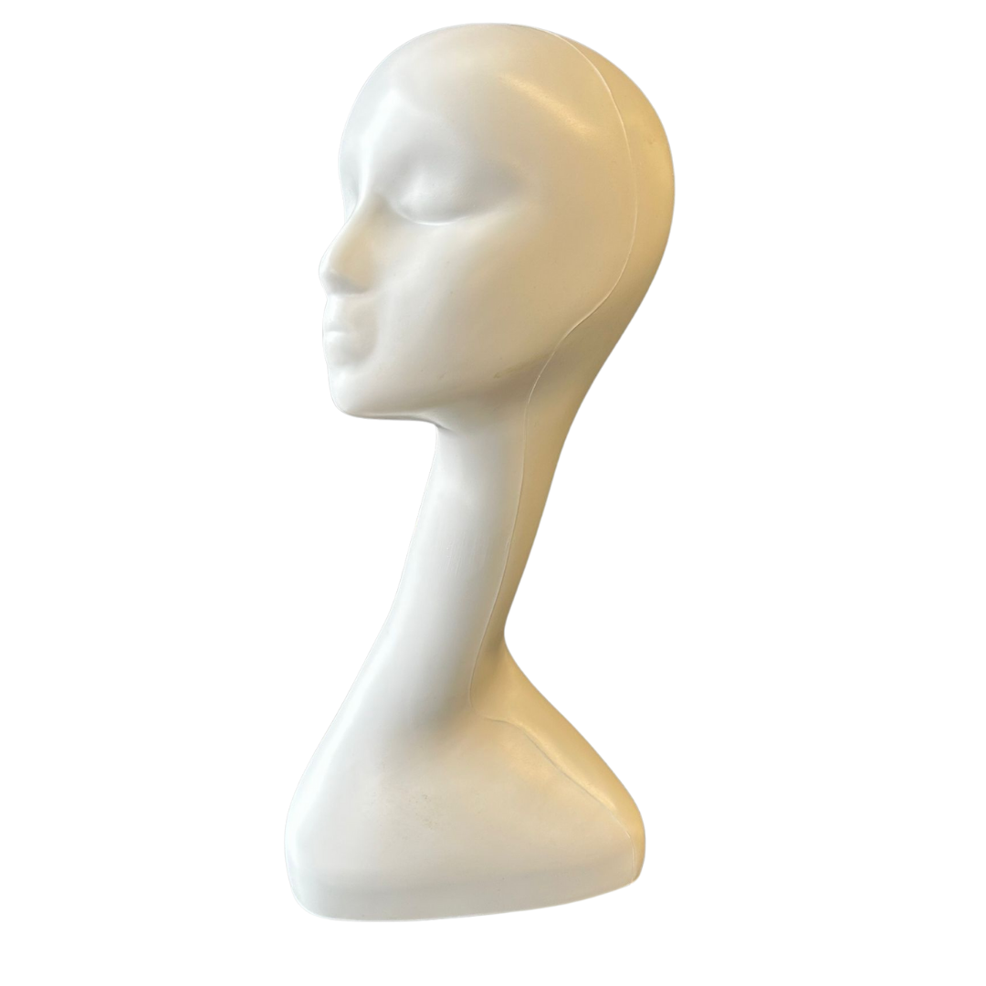 Perfect for countertop displays or shelving, this mannequin head helps increase product visibility while maintaining a minimal, professional aesthetic.